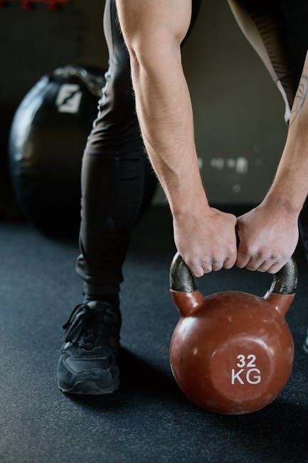 Download our free kettlebell workout PDF for a comprehensive guide tailored to beginners. This resource includes structured routines, safety tips, and progress tracking. Explore detailed exercise descriptions, warm-up protocols, and nutrition advice. The PDF also features a 5-week whole-body workout plan, perfect for building foundational strength. Additionally, discover guides from experts like Pavel, offering insights into mastering essential movements. These resources provide a clear path for newcomers to kettlebell training, ensuring a safe and effective journey toward fitness goals.